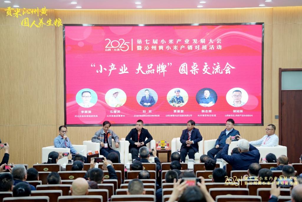 “小产业 大品牌”圆桌交流会由河北省农林科学院研究员李顺国主持,参加人员有山西沁州黄小米集团有限公司董事长石耀武,光华博思特董事长韩志辉,山西汾都香农业开发股份有限公司总经理贾景敦,京东超市粮油调味品业务部经理刘欢,山西省名优土特新产品协会副会长侯冠辰。