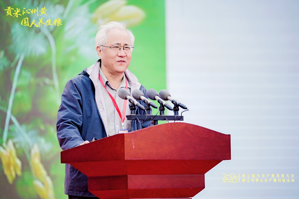 李捷代表学校向与会领导、专家学者及各界嘉宾致以热烈欢迎与衷心感谢。他强调,杂粮作物在应对全球粮食安全挑战中具有独特优势,而沁县“沁州黄”等特色品种,正依托山西得天独厚的自然条件与产业基础焕发新生机。近年来,山西农业大学积极整合资源、发挥科研优势,建设国家杂粮种质资源库、后稷实验室等平台,推动旱作谷子机械化技术落地,并与企业共建产业学院与创新中心,为全省杂粮产业提质增效注入强劲动能。本届大会不仅是推动沁县小米可持续发展的契机,更是我校服务地方、深化产学研融合的重要实践。